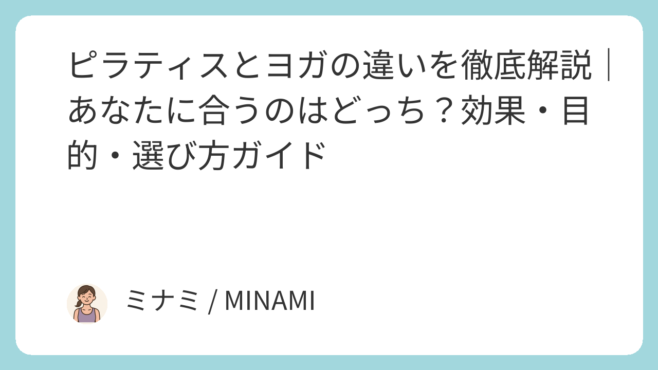 どちらも呼吸を大切にしながら体を動かす“心と体に効くエクササイズ”ですが、実は目的や動き方、呼吸法、得られる効果が異なります。
